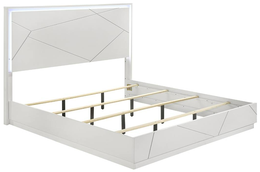 The Esther panel bed features a white and silver finish, integrated LED lighting, sturdy slatted support, and modern geometric design. Elegant and contemporary, it brightens bedrooms with luxe style and subtle illumination.Read More