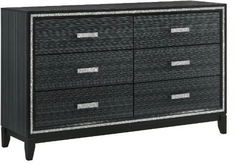 Classic design with touches of modern aspects makes this Haiden Dresser ideal for any bedroom. The piece offers a rectangular tabletop and six storage drawers for displaying or organizing. It also features a glamorous shimmering silver accent trim that adds richness to design.Read More
