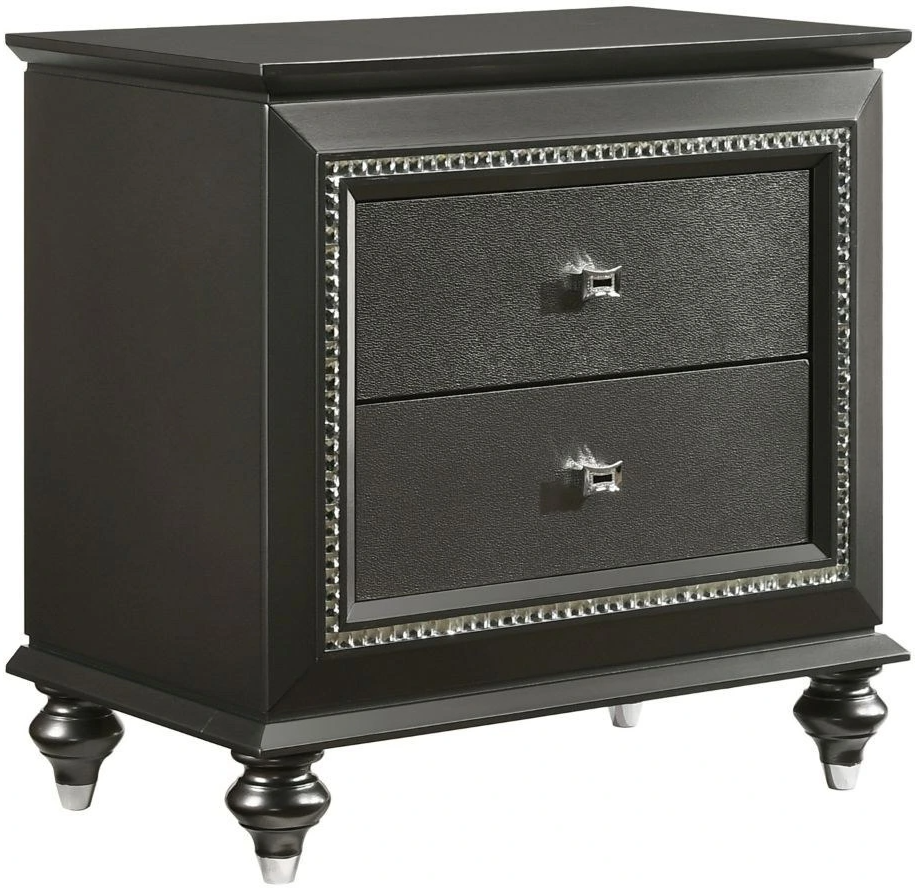 The Kaitlyn nightstand provides a commanding presence in any room. Crafted with a transitional look that is an ideal addition to any bedroom, the nightstand is accented with a textured front and a crystal-like sparkling trim.Read More