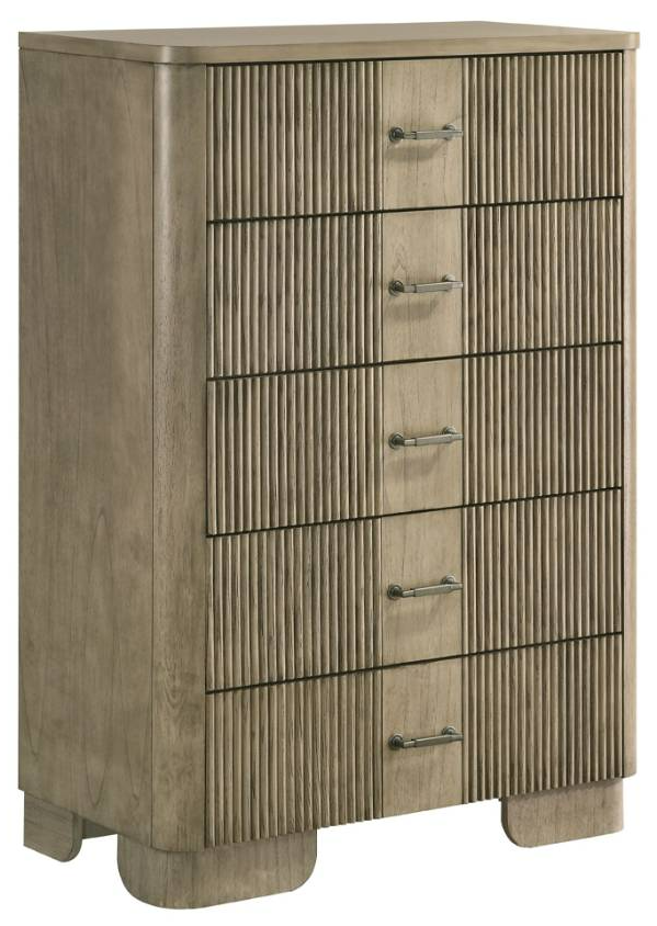 The Lakkari chest features a rich antique oak finish with five drawers, metal knobs, and sturdy wood-composite construction. Its transitional design adds warm, functional storage and classic style to any bedroom.Read More