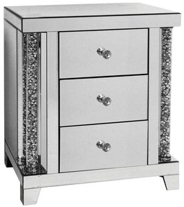 The Noralie mirrored occasional table demonstrates sophisticated, graceful and elegant, style with unique design. This table features three storage drawers decorative drawer pull knobs. While elegantly reflecting its surroundings, combines glamour with modernism. Light is captured and reflected from all surfaces creating brightness and the illusion of space.Read More