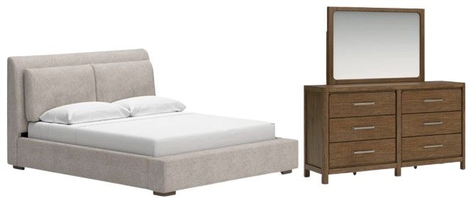 This curated set delivers cozy charm with stylish functionality. Upholstered elements in oatmeal tones paired with light brown finishes create a relaxed yet polished look—perfect for airy, contemporary bedrooms.Read More