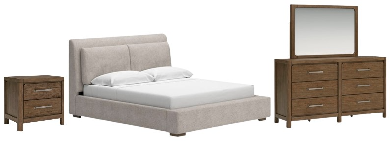 This curated set delivers cozy charm with stylish functionality. Upholstered elements in oatmeal tones paired with light brown finishes create a relaxed yet polished look—perfect for airy, contemporary bedrooms.Read More