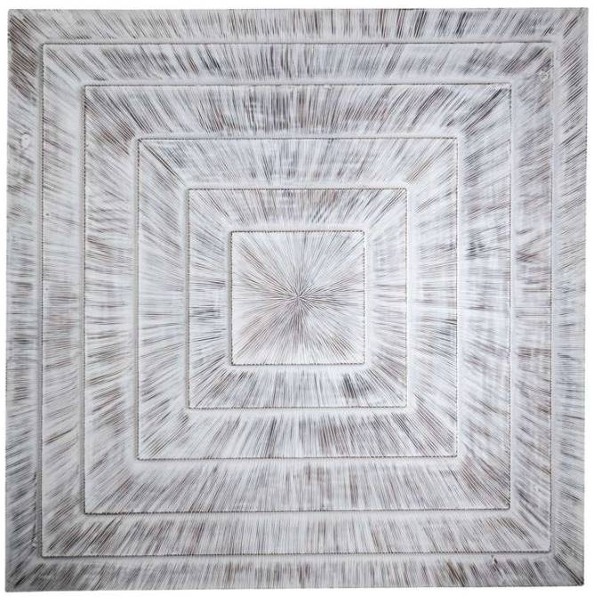 The Broderick wall panel features a layered radiant design. This hand carved wooden wall hanging has a distressed white finish. Characterized by its sleek lines, premium materials, and attention to detail, the Broderick wall panel seamlessly integrates form and function to create captivating wall features.Read More