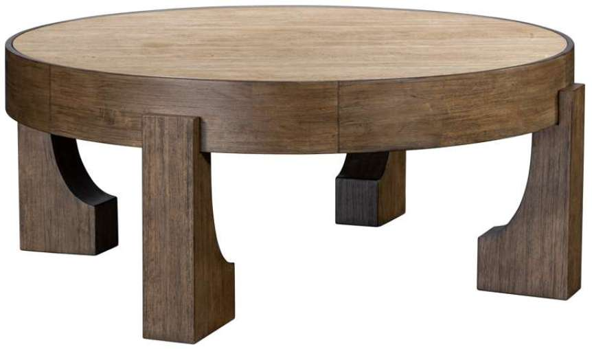 The Canyon cocktail table epitomizes the harmonious blend of modern and rustic elements. Crafted from espresso-finished wire-brushed wood and featuring a round inset travertine stone top, this table exudes sophistication with its modern-bracket style legs. Each piece undergoes a manual wire-brushing process, resulting in unique textural variations.Read More