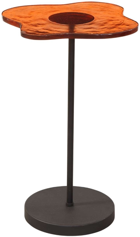 The Elijah Accent Table features a clover-shaped red cast glass tabletop for a bold pop of color