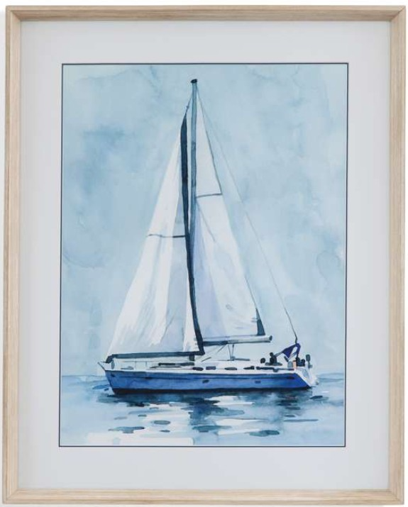 Complete your room design with this wall art from Lone Sailboat I features a matt paper print with a blue and white double mat and a washed warm greige 1" molding. This wall art will definitely add style to your room.Read More