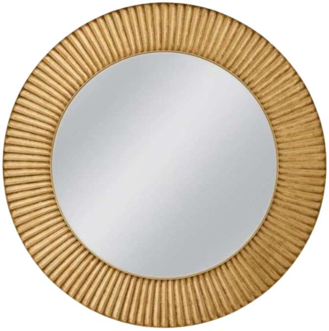 Midtown wall mirror is round with a 6" gold sunburst like frame