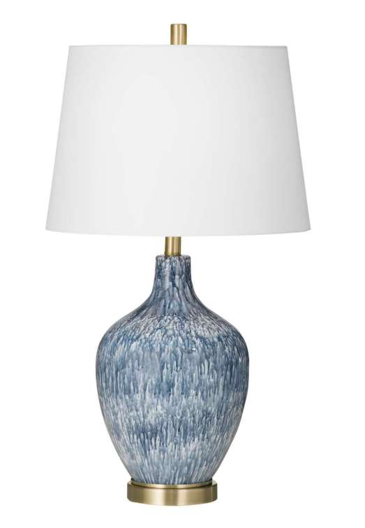 The Montego table lamp is crafted of glass and features a tapered white linen shade. The hand-crafted details produced by a skilled artist lends itself to a unique technique and will vary slightly.Read More
