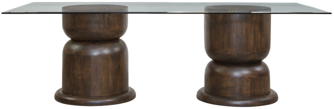 The On the Flip Side Dining Table blends modern design with bold, sculptural elements. Its pillar-style base is crafted from rustic mango wood, featuring an inset of hammered antique bronze metal that adds rich texture and contrast. Topped with a round glass surface, this table offers a clean, airy feels perfect for showcasing its distinctive base.Read More