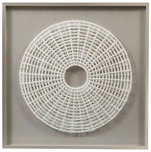 The Palindrome Wall Art features a captivating shadow box design, showcasing a textured spiral woven pattern of white ri