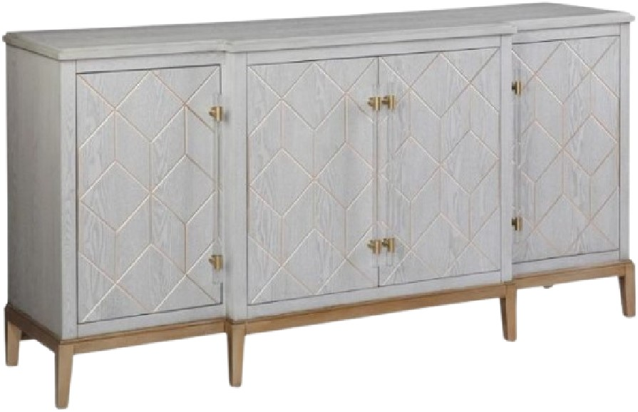 The Portia Server features four door storage with adjustable shelves to store items of all sizes, a cream case with doors that have fretwork with silver highlighting, antique mirror and custom hardware.Read More