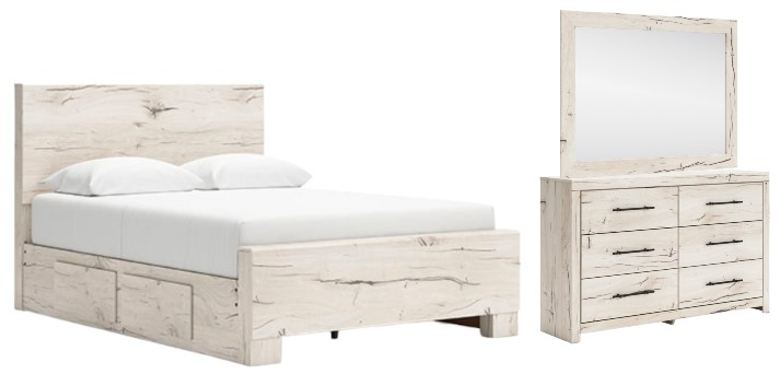 Set includes queen panel bed, dresser and mirror