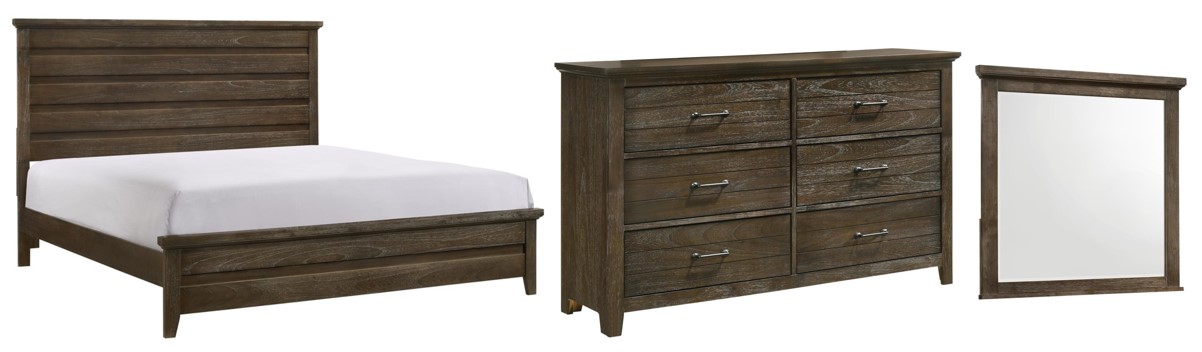 Set includes bed, dresser, and mirror