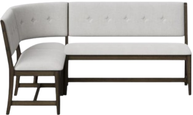 Upgrade your dining area with the stylish Dorval 3-piece Curved Bench with Back. Crafted with a chic walnut finish and plush gray upholstered seat and back, this bench adds both sophistication and comfort to your space. Create the perfect dining nook with the Dorval collection today!Read More