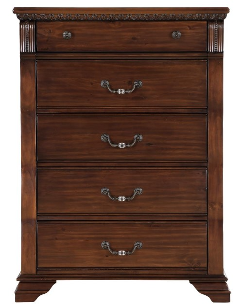 Elevate your bed room with this Isabella Chest from Bernards. Shown in a brown color finish, this dresser features 5 drawers that provides storage for personal items and can be a decorative piece in the room. Make a bold statement by incorporating this furniture to your home.Read More