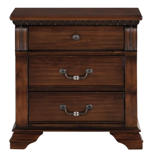 Elevate your bed room with this Isabella Nightstand from Bernards. Shown in brown finish, this nightstand features 3 drawers that provides storage for personal items and can be a decorative piece in the room. Make a bold statement by incorporating this furniture to your home.Read More