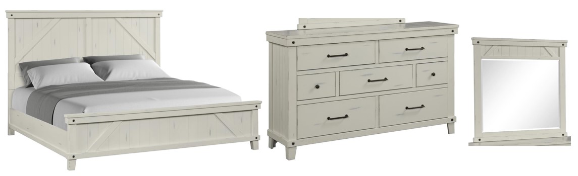 Transform your bedroom into a cozy retreat with the Spruce Creek Bed. The weathered off-white finish and high, paneled headboard showcasing a distinctive X-shaped accent will add a touch of farmhouse charm to your space. Get ready to relax in style and experience the ultimate comfort of this elegant bed.
