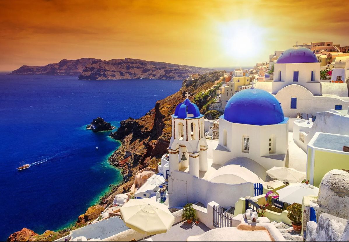 Typically features artistic representations of the stunning sunsets over the greek island of santorini. This type of artwork often captures the breathtaking beauty of the sun setting over the aegean sea, illuminating the white-washed buildings and the iconic blue-domed churches that dot the island's landscape.Read More