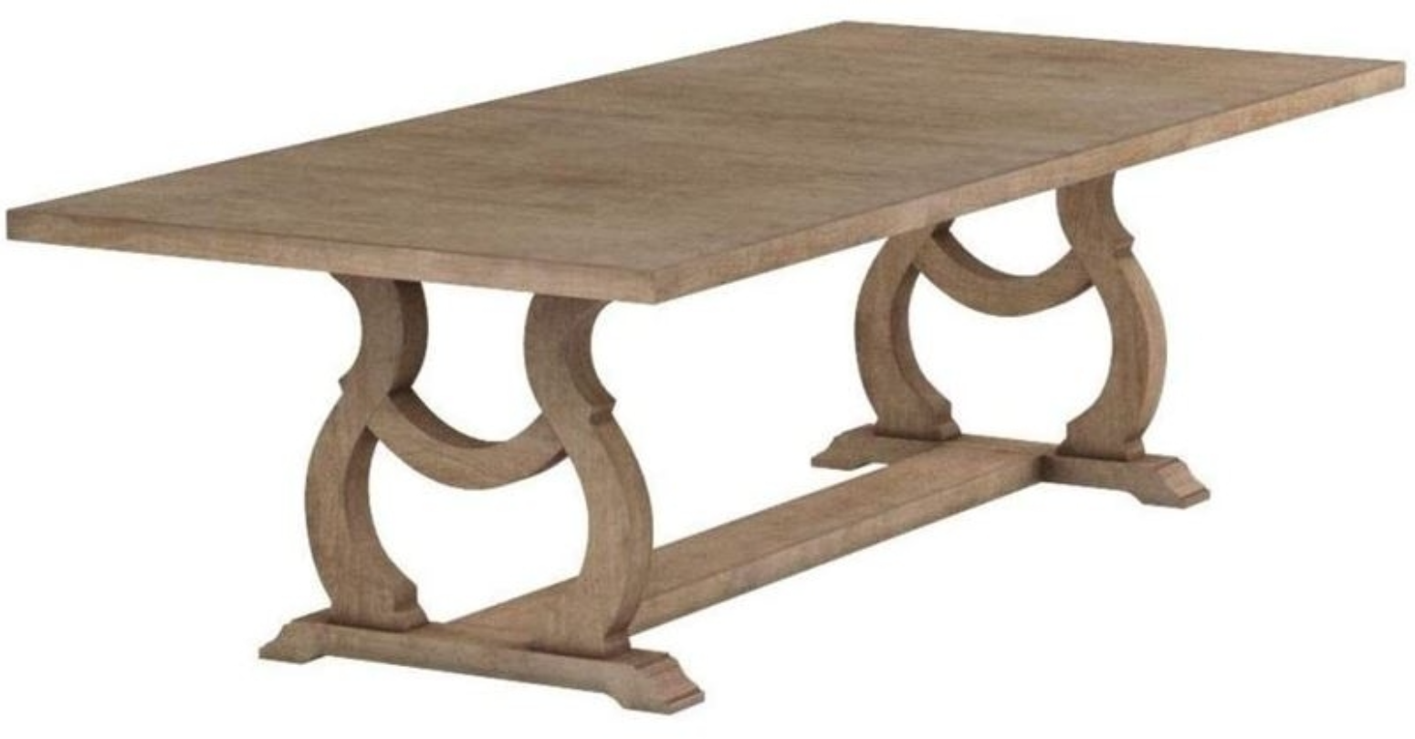 Soft and romantic finishes create an inviting aura for this wood dining table. Beautifully equipped to seat six to eight, this rectangular table is perfect for a growing family. Crafted in solid Asian hardwoods, a barley brown finish sets the perfect tone in a transitional space. Its stylized base features four curvy legs resting on an I-shaped foot. Indulge in holiday meals and share daily conversation at this exquisite dining table.