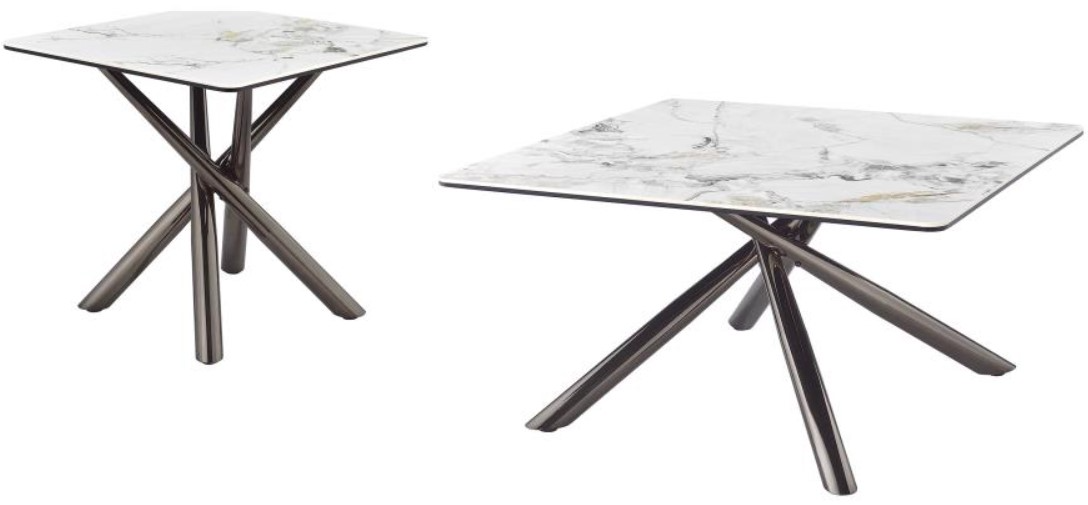 The Coaster® Carvell 2-Piece Mirage White Occasional Table Set includes a coffee table and an end table, both featuring a clean white surface and a sleek black nickel base. These tables offer a sophisticated, modern look, providing both style and practicality for any living room or space.Read More