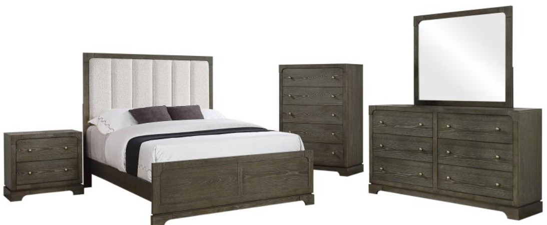 Includes: One (1) queen bed, one (1) nightstand, one (1) dresser, one (1) dresser mirror, and one (1) chest