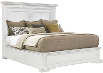 Infused with vintage elegance and practical design, this panel bed offers timeless structure with thoughtful detail. Ornate molding and recessed panels lend refined character, while a distressed white finish softens the frame with antique charm.Read More