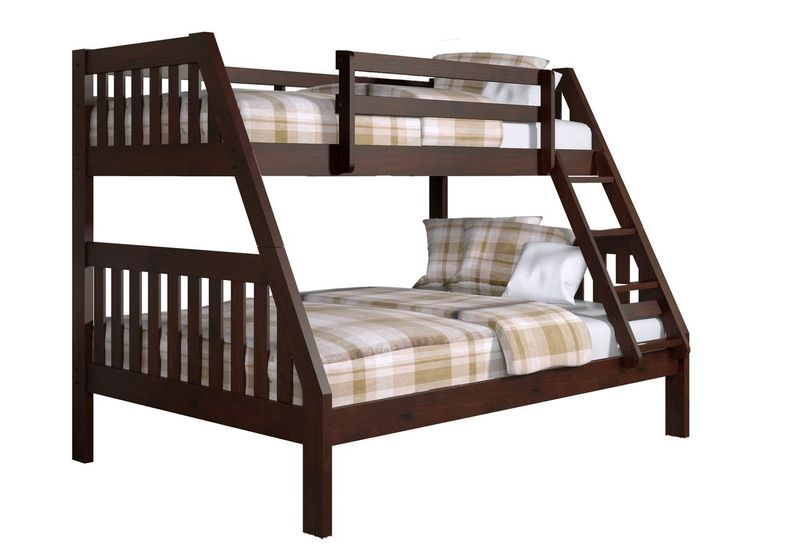 The classic mission design of this twin over full bed has a grown-up appeal for your maturing child. The dark cappuccino finish pairs well with any decor. The solid wood construction of this bunk bed provides outstanding durability.Read More