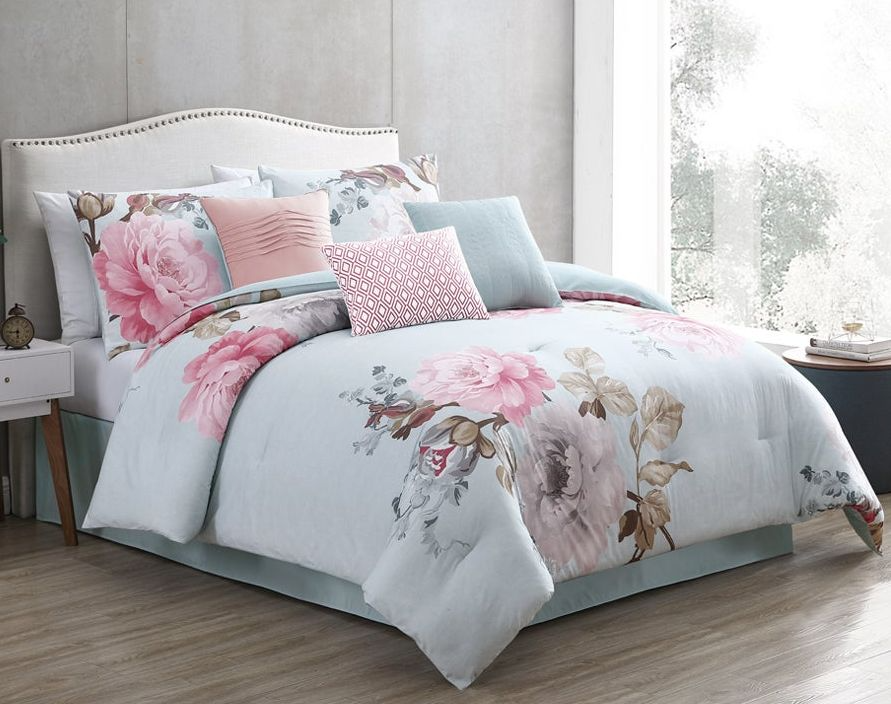 The Hallmart Collectibles Rachel 7-Piece Spa Queen Comforter Set is the elegant addition you've been looking for. Add a pop of light, breezy color and floral pattern to your bedroom with this set. The airy blue color in this set is reminiscent of calm, cloudless days.Read More