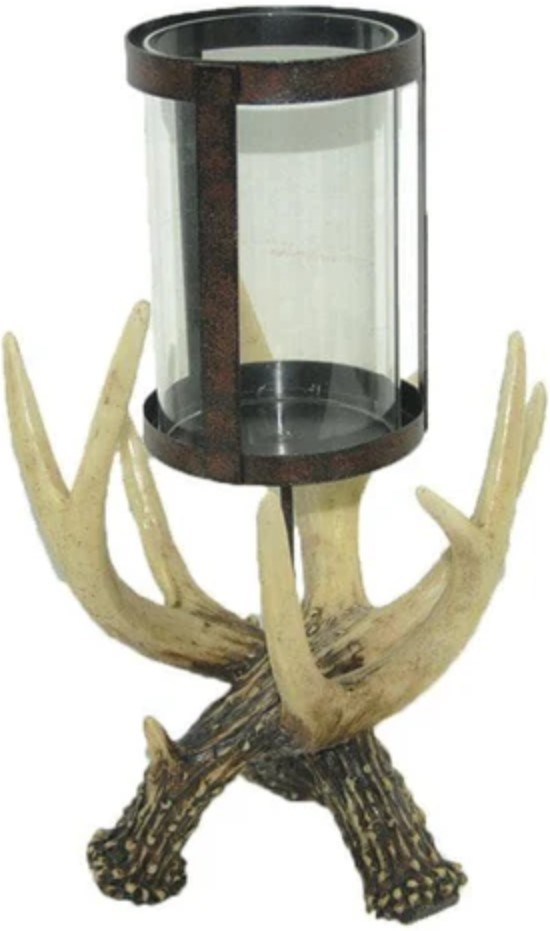 Introduce an elegant and rustic accent piece for your table or fireplace with our Antler Hurricane Candle Holder. This deer-themed candle holder is crafted from durable resin that's cast from naturally shed antlers and hand-painted for an authentic, rugged look.Read More