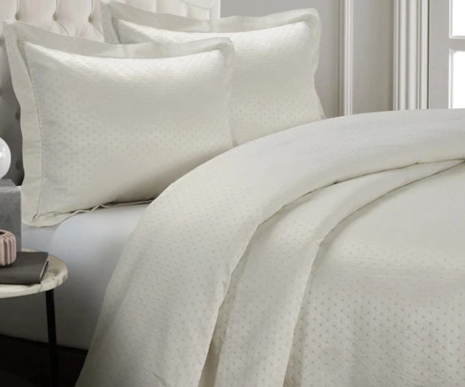 Drawing from the timeless appeal of Swiss dot patterns, the Belle Bedding Set infuses tradition with a contemporary twist. Elevated by shimmering high-shine yarns and a dobby weave, this design becomes a modern luxury essential. With its neutral off-white hue, it gracefully complements any piece from our collections, underscoring its unmatched versatility.Read More