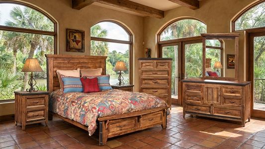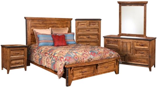 This 6-piece king bedroom set offers lasting quality with a solid wood construction and rich, natural finish. Includes a king size panel bed, dresser, mirror, 2 nightstands and a chest. Each piece adds warmth and character, making it a functional and stylish upgrade for your bedroom space.Read More