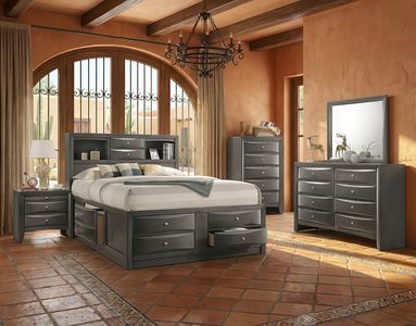 Elevate your bedroom with the Ireland group, a stunning collection designed for both exceptional style and superior organization. The transitional design, featuring a sophisticated Gray Oak finish and sleek brushed nickel hardware, offers a contemporary yet timeless look that complements any South Texas decor. The clean lines and subtly shaped drawer fronts give this collection a polished, modern appeal. Beyond its aesthetics, this group is an organization dream, featuring an innovative storage platform bed and ample drawer space in every accompanying case piece, making it the perfect solution for keeping your bedroom tidy and clutter-free.Read More