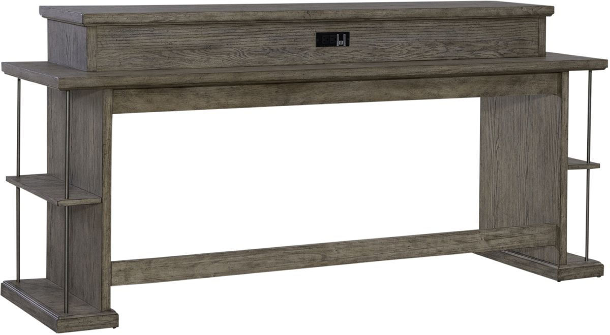 Creativity starts with the City Scape console bar table. Crafted with excellence using rubberwood solids and split heart white oak veneers, this piece features a Burnished Beige finish. The console bar table has end shelves suspended by metal tubing for a floating design.Read More