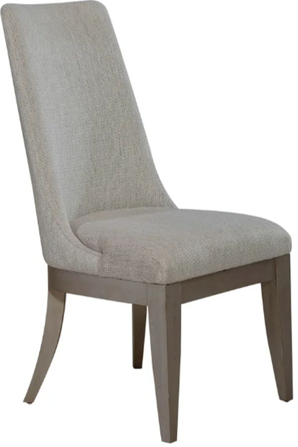 Reinvent your style with the Montage upholstered side char. Crafted of poplar solids, this chair features an armless design, upholstered in a pearl platinum with a sloped back and tapered legs. Nylon chair glides are added to protect your flooring.Read More