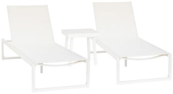 Create your own outdoor oasis with this chic 3-piece lounge set in all white. Featuring two sleek chaise lounges and a matching side table, this ensemble combines modern elegance with practical functionality.Read More