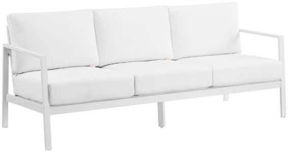 The deep cushions, upholstered in matching white Sunbrella™ fabric, are fade, stain, and mold resistant to ensure a fresh look and feel season after season. With its minimalist design and easy-to-maintain materials, this sofa balances practicality and elegance to create a stylish piece you’ll enjoy for years. An array of matching outdoor furniture is also available for purchase as a complete set.