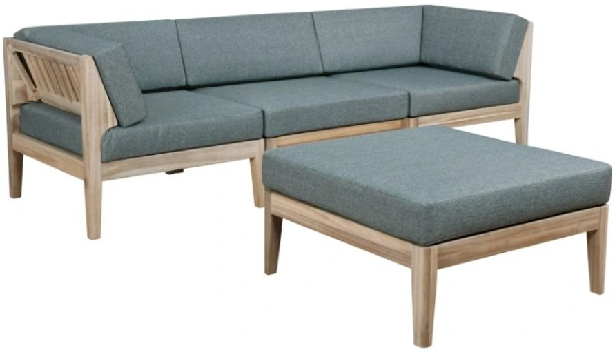 Luxurious contemporary styling creates your own spa getaway. This 4 piece sectional is at home pool side or in the living room, providing comfort and elegance wherever desired. Natural finished acacia wood coordinates with grey performance fabric cushions that comfortably stand up to the weather.Read More