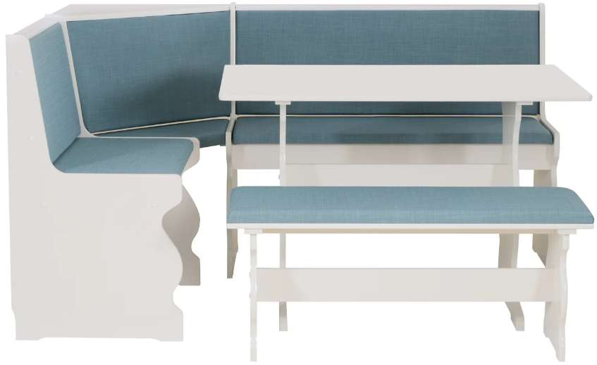 This nook, table and bench set is the perfect mix of coastal and traditional style. Available in 4 distinct color & upholstery patterns, this nook set is ideal for small kitchen spaces in any home or beach house.Read More