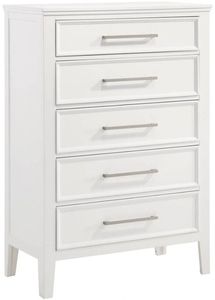 The Andover Five Drawer Wood Chest in White combines durability, functionality, and timeless style, making it a standout addition to any bedroom. Expertly crafted from solid Rubberwood, manufactured woods, and wood veneers, this chest is built to last while highlighting the natural beauty of real wood.Read More