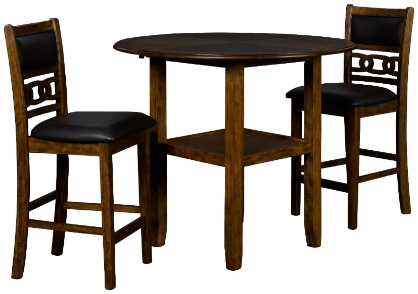 The small space friendly Gia counter drop leaf table and chair set has two 8" drop down leaves that transform this dining table from a 42" round dining set to 24" wide, fitting into compact spaces with ease. The counter table and chair legs are crafted of solid Rubberwood add strength and stability.Read More
