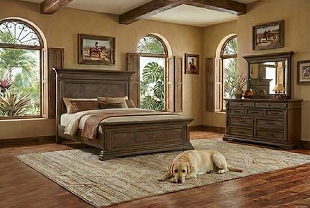Transform your master bedroom into a sanctuary of enduring style and comfort with the Mar Vista Bedroom Collection from New Classic Furniture. Now available at our showrooms serving Brownsville, McAllen, Rio Grande City, Laredo, and Eagle Pass, this set brings a touch of classic luxury right to the border region. The Mar Vista collection is a stunning example of traditional design crafted for modern living. Built with sturdy rubberwood solids and beautiful oak veneers, it is designed to stand the test of time. The centerpiece of the collection is the stately panel bed, featuring eye-catching herringbone plank inlays on both the headboard and footboard. A rich, multi-step brushed walnut finish—achieved through meticulous distressing, wire brushing, and a charcoal glaze—gives each piece a warm, heirloom-quality character that perfectly complements homes across the Rio Grande Valley. While its look is classic, its features are thoroughly modern. The headboard includes built-in USB ports, making it easy to keep your devices charged and ready from the comfort of your bed. The case pieces, including the dresser, chest, and nightstand, are built with the same attention to detail, featuring: