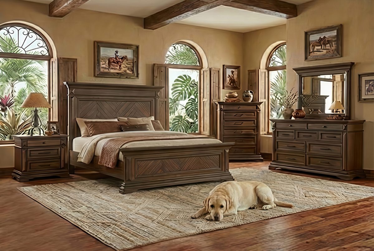 Transform your master bedroom into a sanctuary of enduring style and comfort with the Mar Vista Bedroom Collection from New Classic Furniture. Now available at our showrooms serving Brownsville, McAllen, Rio Grande City, Laredo, and Eagle Pass, this set brings a touch of classic luxury right to the border region. The Mar Vista collection is a stunning example of traditional design crafted for modern living. Built with sturdy rubberwood solids and beautiful oak veneers, it is designed to stand the test of time. The centerpiece of the collection is the stately panel bed, featuring eye-catching herringbone plank inlays on both the headboard and footboard. A rich, multi-step brushed walnut finish—achieved through meticulous distressing, wire brushing, and a charcoal glaze—gives each piece a warm, heirloom-quality character that perfectly complements homes across the Rio Grande Valley. While its look is classic, its features are thoroughly modern. The headboard includes built-in USB ports, making it easy to keep your devices charged and ready from the comfort of your bed. The case pieces, including the dresser, chest, and nightstand, are built with the same attention to detail, featuring: