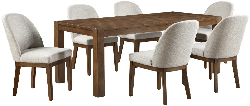 The Phoenix dining set includes a stylish brown rectangular table with six coordinating chairs. Its classic design and rich finish bring a touch of sophistication to any dining space, perfect for both everyday meals and special gatherings.Read More