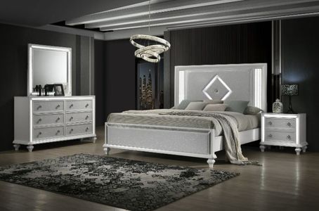 Brighten up your bedroom with the Stardust 4-Piece Queen Bedroom Set. This chic set includes a queen-sized bed, dresser, nightstand, and mirror, all in a fresh white finish. The modern design and clean lines bring a serene, contemporary look to any space.Read More