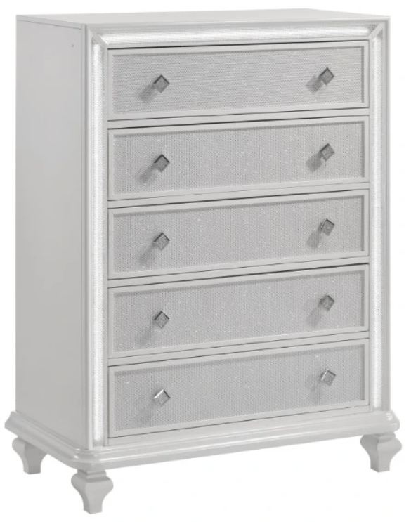 Sleek White Finish: The contemporary white finish is accented with a dose of glam provided by glittery silver accents