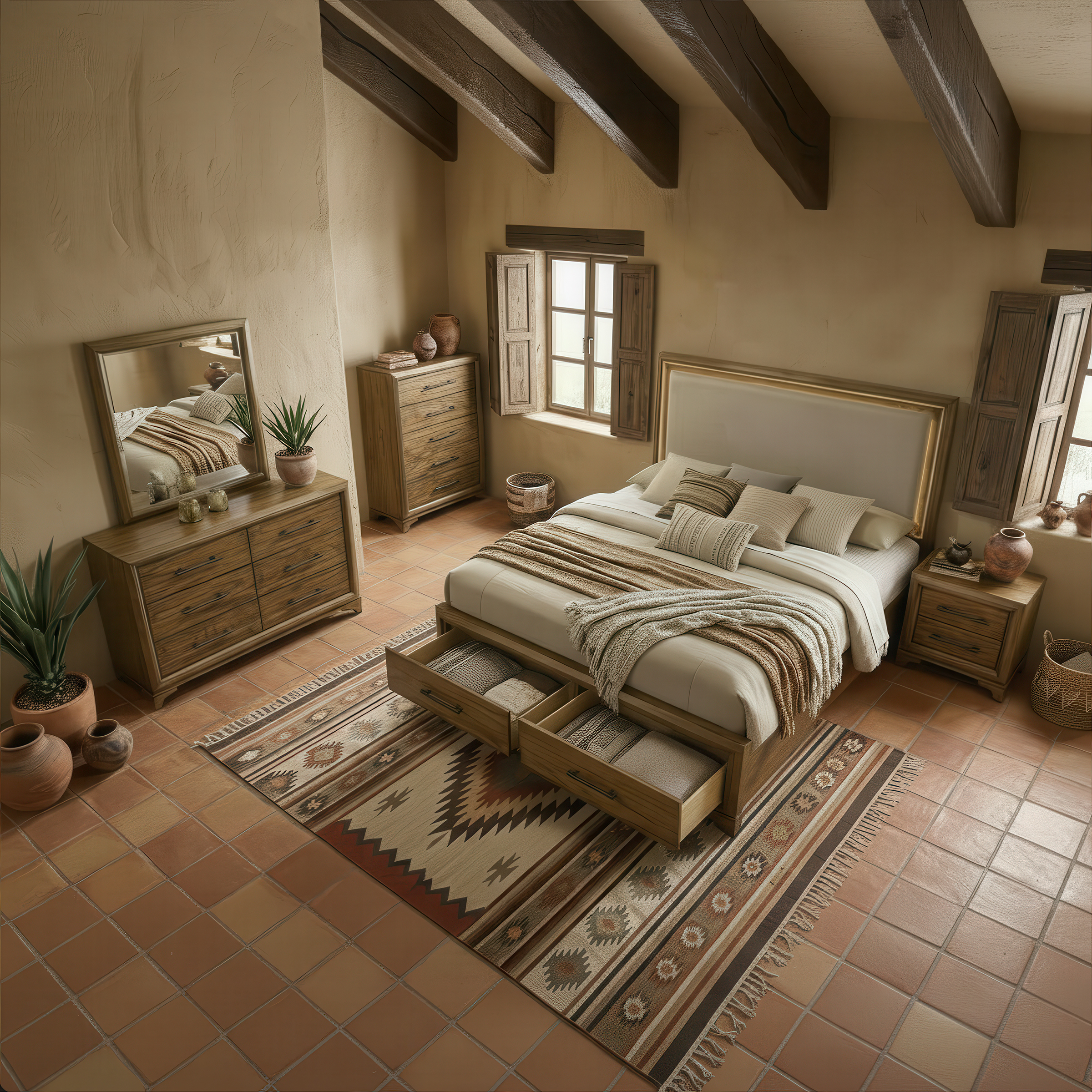 Space-Saving Storage: The footboard features two spacious, integrated drawers, providing the perfect spot to stow away extra blankets, pillows, or seasonal clothing, helping you keep your sanctuary clutter-free.