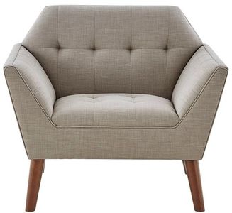 Accent your living area with the mid-century allure of INK+IVY’s Newport Lounge Chair. The tight back and seat offer extra plush comfortable seating and features a clean tailored look accented with button tufting details. Textured light grey upholstery and a pecan finish on the tapered wood legs gives this lounge chair a warm contrast and alluring appeal. With its beautiful design and small silhouette, this mid-century lounge chair is sure to make a statement in your living room. Leg assembly is required.