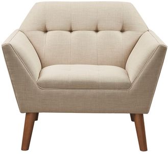 Accent your living area with the mid century allure of INK+IVY’s Newport Lounge Chair. The tight back and seat offers extra plush comfortable seating and features a clean tailored look accented with button tufting details. Textured beige upholstery and a pecan finish on the tapered wood legs gives this lounge chair a warm contrast and alluring appeal. With its beautiful design and small silhouette, this mid century lounge chair is sure to make a statement in your living room. Leg assembly is required.Read More