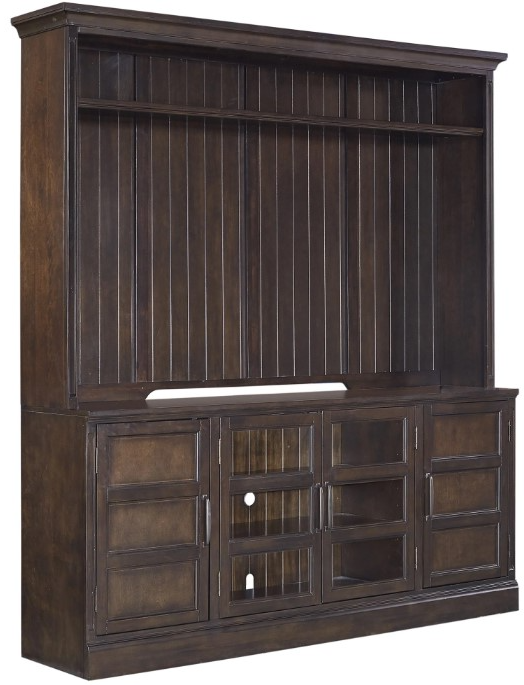Simplicity is key with this Console and Hutch combination. The ample hutch opening allows for a larger flatscreen while the storage in the console keeps your components tucked away.Read More